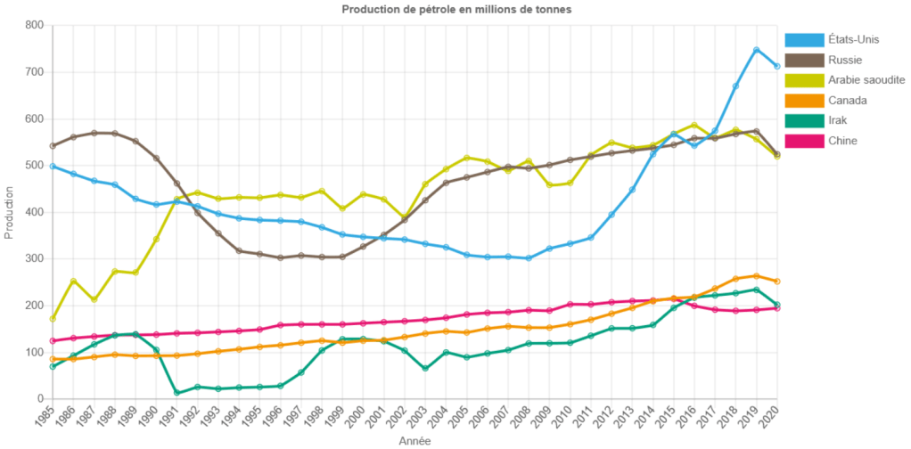 Les États-Unis sont désormais la première puissance énergétique mondiale. Ils ont ravi la place à la Russie dès 2011 en termes d’exportation de gaz, et au duo de tête russo-saoudien dès 2017 concernant le pétrole. Cet atout permet à Washington de se prémunir un peu plus contre la potentialité d’un choc pétrolier, quand bien même une perturbation durable de la production pétrolière moyen-orientale induirait une flambée des prix à terme sur le marché du pétrole. Elle lui a même permis de profiter en 2022 de l’invasion de l’Ukraine par la Russie pour vendre massivement du gaz naturel liquéfié aux Européens désireux de se déconnecter des gazoducs russes.